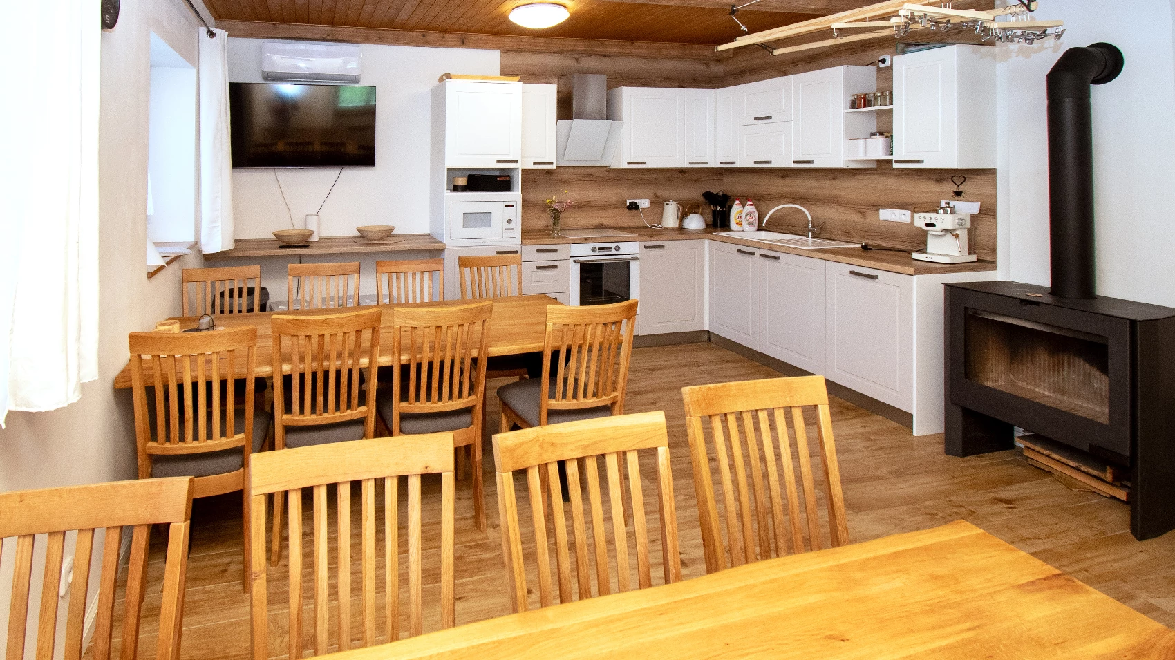 Nabízíme ubytování až pro devatenáct osob v prostorné a pohodlné chalupě, která je kompletně vybavená tak, aby splnila všechny vaše potřeby a zaručila maximální pohodlí.